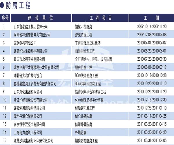 - 宏順建設(shè)核心技術(shù) 宏順建設(shè)專業(yè)防腐各種水塔防腐,儲(chǔ)油罐防腐,管道防腐,吊機(jī)防腐,龍門吊防腐,水泥筒倉防腐工程,有多年的成功經(jīng)驗(yàn),施工業(yè)績遍布全國各地... 了解詳情